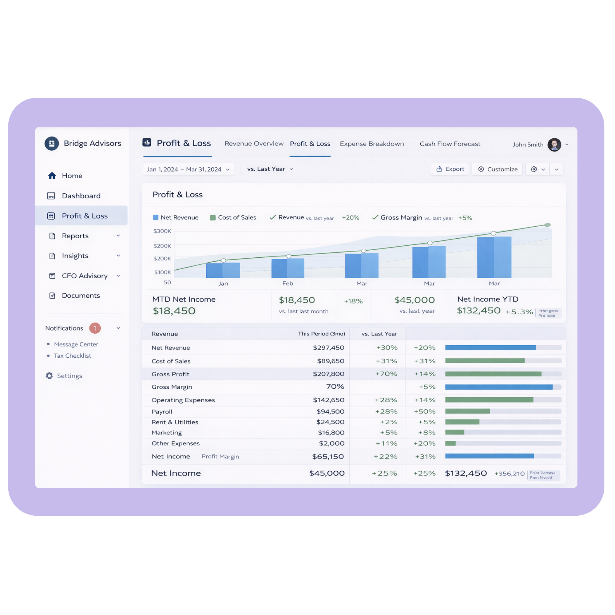 By joining Bridge Advisors, you not only get a team of experienced Advisors but essential tools to help you manage your operations and finance more effectively.